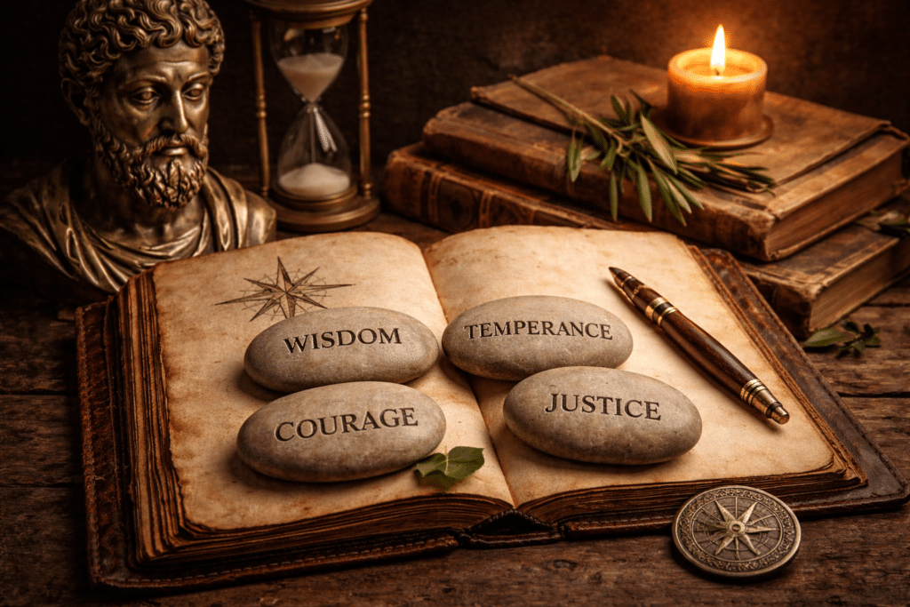 Stoicism, in particular, is often reduced to quotes and concepts. Wisdom is discussed, but not trained. Temperance is admired, but not practiced. Courage is praised, but rarely tested. Justice is referenced, but not examined internally.